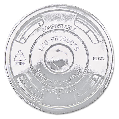 Corn clear plastic lids (PLA). Flat. Fits: 9-24 oz Cups; Material(s): Corn Plastic; Color(s): Clear; For Use With: Eco-Products® EPCC9SGS, EPCC12GS, EPCC16GS, EPCC20GS.