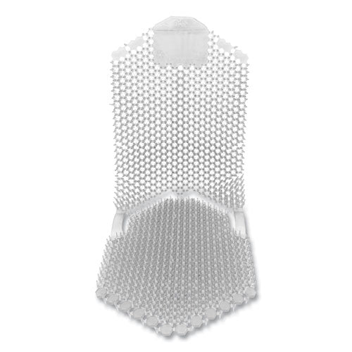 The Tsunami 60-day urinal screen contains almost three times more fragrance than competitors. The patented two-sided design eliminates 99% of urine splash on both sides for error-free installation. Tsunami doesn't require mounting, simply place the base over the drain and lean the body up the back of the urinal and you're done. No suctions cups to engage so it’s faster and there's less waste. Each screen has date tabs for replacement reminders and contain beneficial bacteria that consume odors and keep drains clean, clear and smelling fresh.