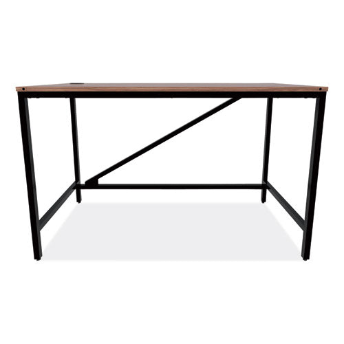 Table desk/writing desk perfect for the home or small office. Durable laminate top with squared steel powder coated legs. Cross-stability bar to prevent rocking and to ensure a stable feel. Leveling glides included to adjust for uneven floors. Series Name: Alera® Industrial Series; Worksurface/Base Color: Modern Walnut; Color Family: Walnut; Worksurface Shape: Rectangular.