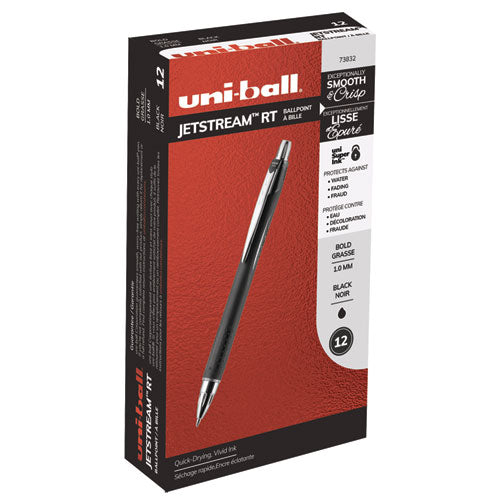 Enjoy your daily writing experience with JETSTREAM RT Retractable Ballpoint Pens from uni-ball. Great pen for everyday writing, these pens contain unique hybrid ink that delivers the smoothness and vibrant color of a gel pen with the quick-drying properties of a traditional ballpoint. JETSTREAM RT pens dry as quickly as you write, which prevents smudging and smearing to produce neat-looking documents. uni Super Ink technology settles ink particles deep into the paper for protection against water, fading and fraud. Contemporary stainless steel accents offer a stylish appeal while the embossed grip helps maintain precision and control. Pen Sub-Brand & SKU Line: Jetstream™ RT; Pen Style: Retractable; Pen Type: Ballpoint Pen; Refillable (Yes/No): Yes.