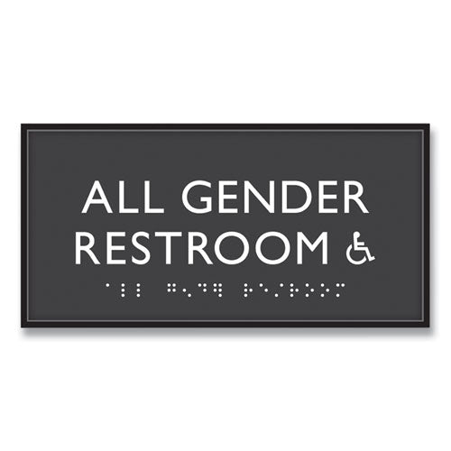 Ada Sign, All Gender Restroom Accessible, Plastic, 4 X 4, Clear/white