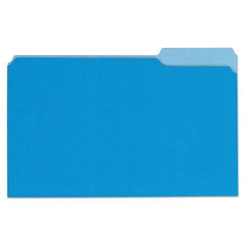 Bright color—great for color-coding and preventing misfiles. Constructed of high-quality 11 pt. stock to resist tearing. Bottom is triple-scored for 3/4", no-sag expansion. Undercut at tabs. File Folder Size Type: Legal; File Folder Color: Blue/Light Blue; Color Family: Blue; File Folder Material: 11-pt Stock.