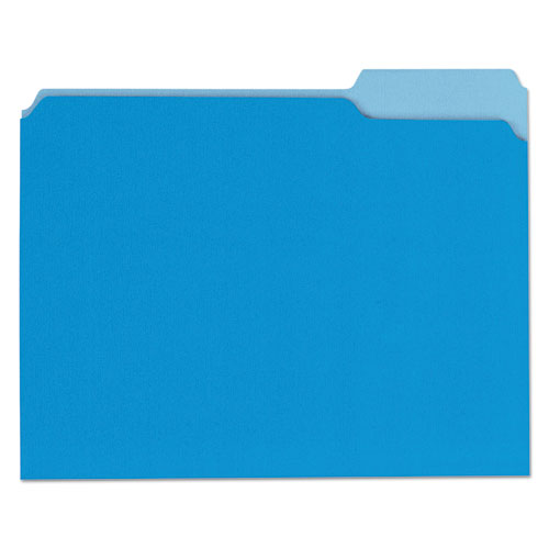 Bright color—great for color-coding and preventing misfiles. Constructed of high-quality 11 pt. stock to resist tearing. Bottom is triple-scored for 3/4", no-sag expansion. Undercut at tabs. File Folder Size Type: Letter; File Folder Color: Blue/Light Blue; Color Family: Blue; File Folder Material: 11-pt Stock.