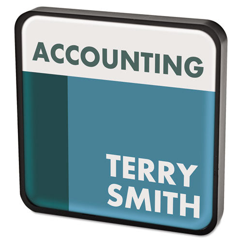 Create your own cubicle or wall sign in just minutes with the easy-to-use "Do-it-Yourself" sign. Use web-based templates to create the customized insert and print out on your laser or inkjet printer. Translucent cover reduces glare and protects sign. Includes panel wall hooks and double-sided foam mounting tape. Frame Color: Black; Size: 4 3/8 x 4 3/8; Material(s): Plastic; Width: 4 3/8".