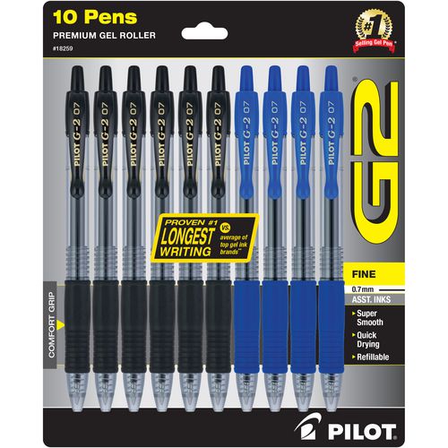 Choose G2®—one of world's longest-lasting and one of America's top-selling gel pens. Premium pen features vibrant, quick-drying gel ink to deliver a super-smooth, high-performance writing experience. Translucent barrel allows you to keep an eye on your ink supply, while a contoured, cushioned-rubber grip provides enhanced writing comfort and greater control. G2® Premium Retractable Gel Ink Pens are great for everyone, especially those who write for a living. Refillable.