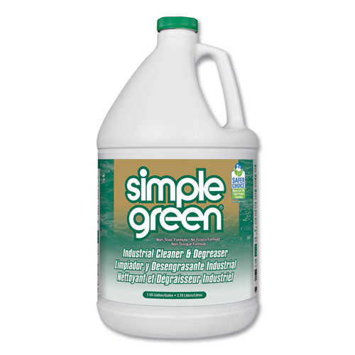 A powerful all-purpose cleaner and degreaser that provides a safer alternative to other cleaners, bleaches and solvents. The trusted formula is non-abrasive and non-corrosive, and is recognized by the U.S. EPA's Safer Choice Program. Safe for all washable surfaces, Simple Green can be used to remove heavy dirt, grease, food residue and stains from any washable surface including countertops, sinks, tile, carpet, flooring, upholstery and more. The cost-effective concentrate can be used manually or in cleaning equipment such as floor scrubbers, dip tanks, carpet extractors, pressure washers, parts washers, steam extractors and foamers. It easily cuts through tough grease, oils, cutting fluids, built-up grime and residue on equipment, engines, machinery, vehicles and manufactured parts, making it ideal for a wide range of industries including janitorial, manufacturing, MRO, food processing, mining, automotive, transportation and engineering. Application: Degreaser/Cleaner; Applicable Material: Carpet; Ceramics; Cement/Concrete; Enamel; Fabric; Fiberglass; Laminates; Metal; Plastic; Upholstery; Chemical Compound: Water based non-ionic surfactant; Dirt Types: Grease; Grime; Lubricants; Oil-Based Soil.