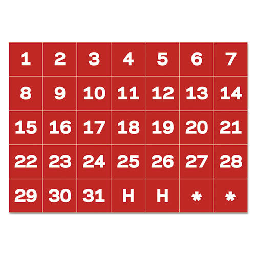 Interchangeable Magnetic Board Accessories, Calendar Dates, Red-white, 1" X 1"