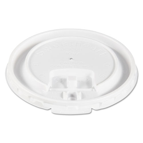 Convenient lid features a scored tab to push back and lock into place. Fits: 10 oz Solo Trophy Foam Hot/Cold Drink Cups; Material(s): Plastic; Color(s): White; For Use With: X10NSYM, OFX10N.