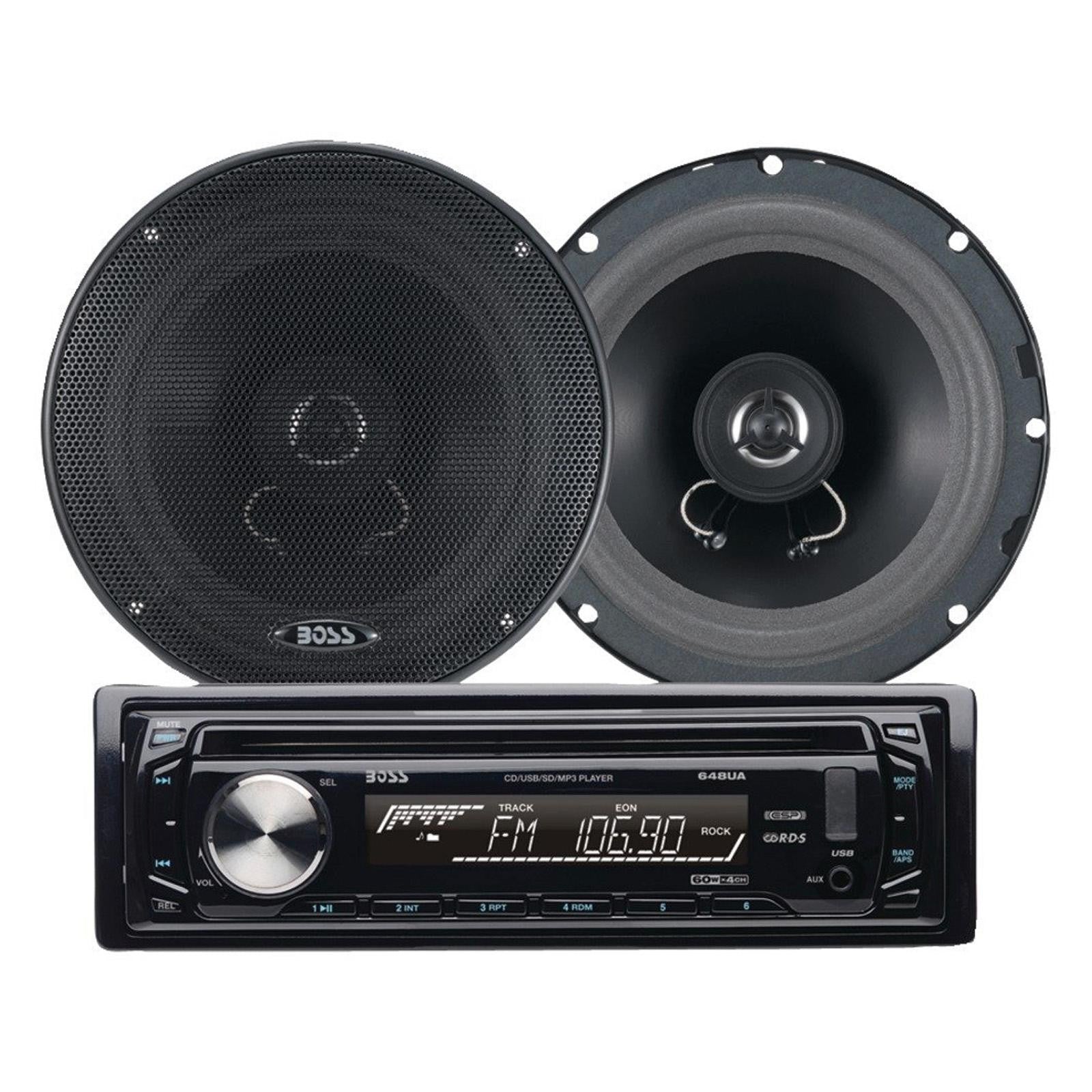 Boss Single-DIN In-Dash MP3-Compatible CD/MP3 AM/FM Receiver Plus One Pair 6.5" 2-Way Full Range Speakers