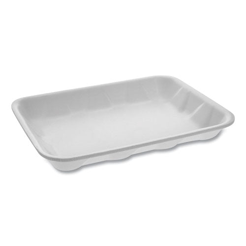 Sturdy, lightweight foam trays. Can be used in blast freezer, refrigerator, for a heated display or at room temperature. Rigid construction stands up to rugged handling. #4D Meat Tray. Food Container Type: Supermarket Tray; Material(s): Polystyrene; Color(s): White; Width: 9.5".