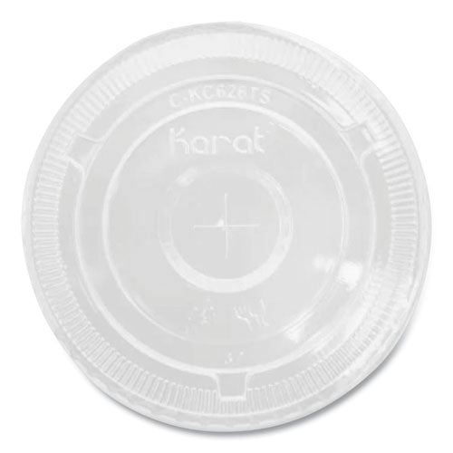 Karat® PET lids are durable, high clarity, and crack resistant. They are also recyclable and BPA free. Compatible with Karat® Cold Cups.