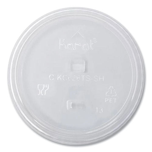 Karat® PET lids are durable, high clarity, and crack resistant. They are also recyclable and BPA free. Compatible with Karat® Cold Cups.