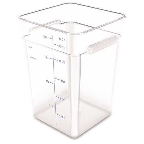 Squares Polycarbonate Food Storage Container, 22 Qt, 11 13 X 11.13 X 15.72, Clear, Plastic