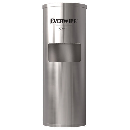 The stainless steel dispenser stand keeps you ready for business, providing your customers with easy access to wet wipes. This jumbo roll dispenser allows for high volume usage, and needs refilling less often, saving you time and money. The sleek and modern stainless steel finish blends in with any commercial decor for a clean-looking environment. This standalone wipe dispenser includes a trash bin to discard used wipes. Compatible with Everwipe by Tork W12 refills.