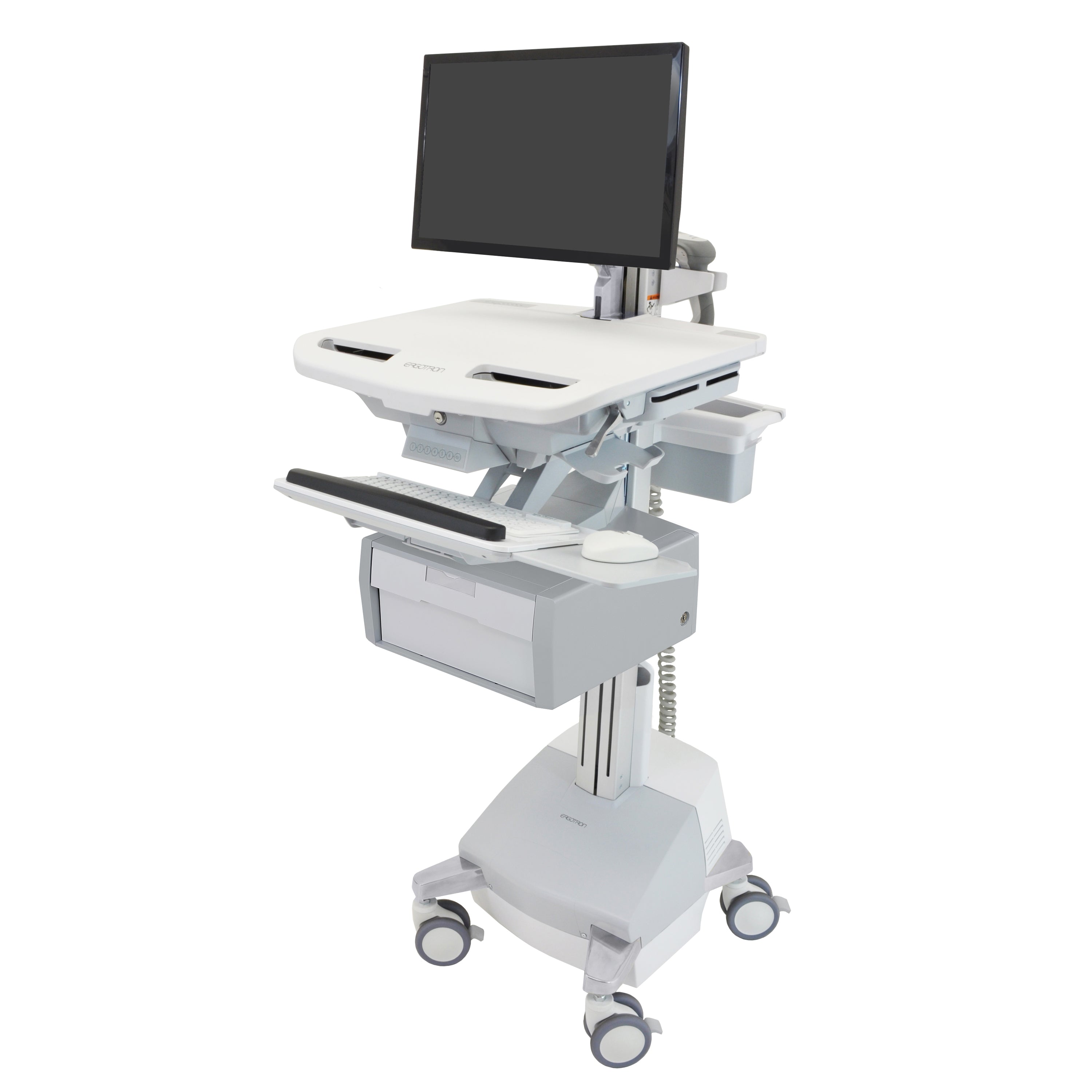 This innovative, truly ergonomic and easy-to-maneuver healthcare cart features sit-to-stand height adjustment, side-to-side LCD and keyboard motion...