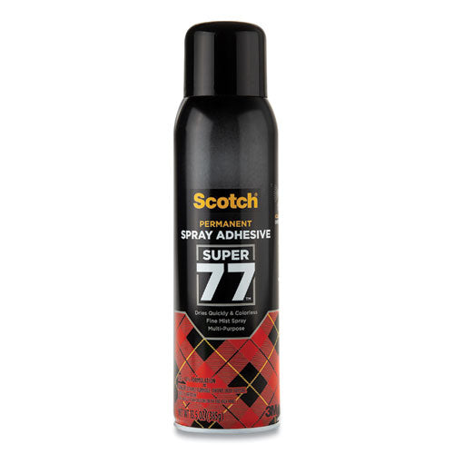 Scotch® Super 77™ Multi-Purpose Adhesive is an extremely versatile, fast-drying spray adhesive that bonds a wide range of lightweight materials. Its fast, aggressive tack and low soak-in make it ideal for a broad range of projects. Use it for bonding paper, cardboard, fabric, cushion foam, plastic, metal, wood, and much more. Adhesive Type: Aerosol/Spray; Packing Type: Can; Washable: No; Color on Application: Clear.