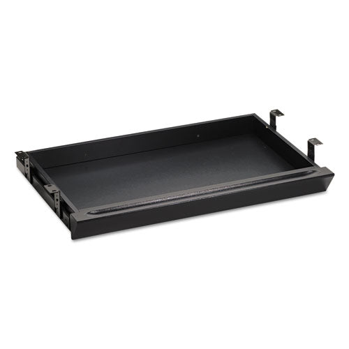 The perfect option for giving you the quick access storage you need at your desk. Simply mount this drawer to the underside of your desk and it provides a sloped front for reduced visibility with better design appeal. Enjoy the smooth sliding action of the height -adjustable brackets with 3/4" extension ball bearing slides so you can access your items swiftly. The BBF Pencil Drawer ensures that you have everything where you can find it easily, plus includes a routed groove to hold pens and pencils, further reducing clutter. For use on many Bush Business Furniture Collections including Milano2, Quantum, 300 Series, Enterprise, Syndicate, Series A, Series C and Aspen Tables. Color: Black; Color Family: Black; Overall Width: 26.38"; Overall Depth: 15.88".